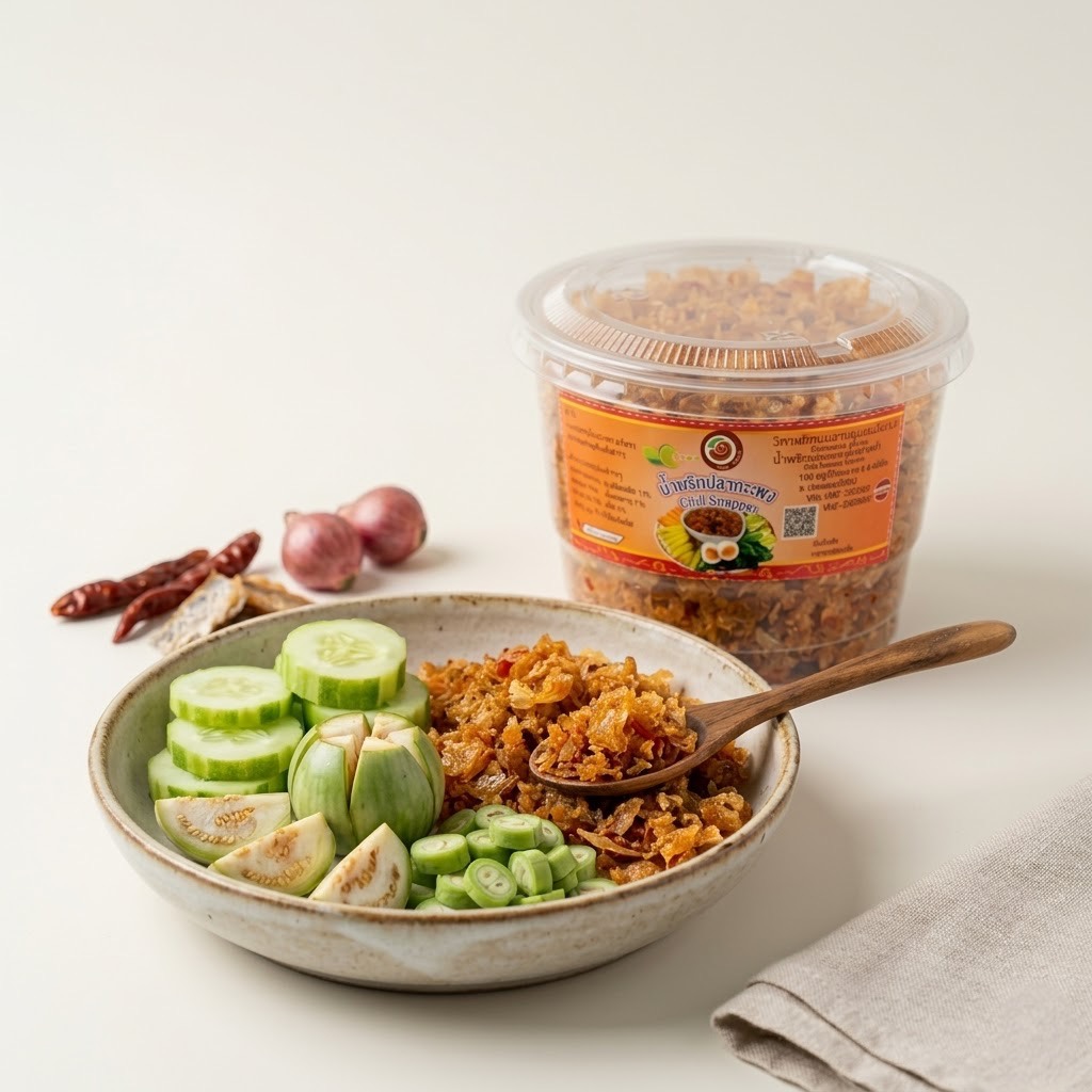 ปลากระพงเป็นแหล่งโปรตีนที่มีคุณภาพ เนื้อแน่น รสชาติอร่อย เมื่อนำมาผสานกับสมุนไพรไทย ทำให้น้ำพริกมีความหอม กลมกล่อม และรสชาติลงตัว เหมาะกับอาหารไทยหลากหลายเมนู