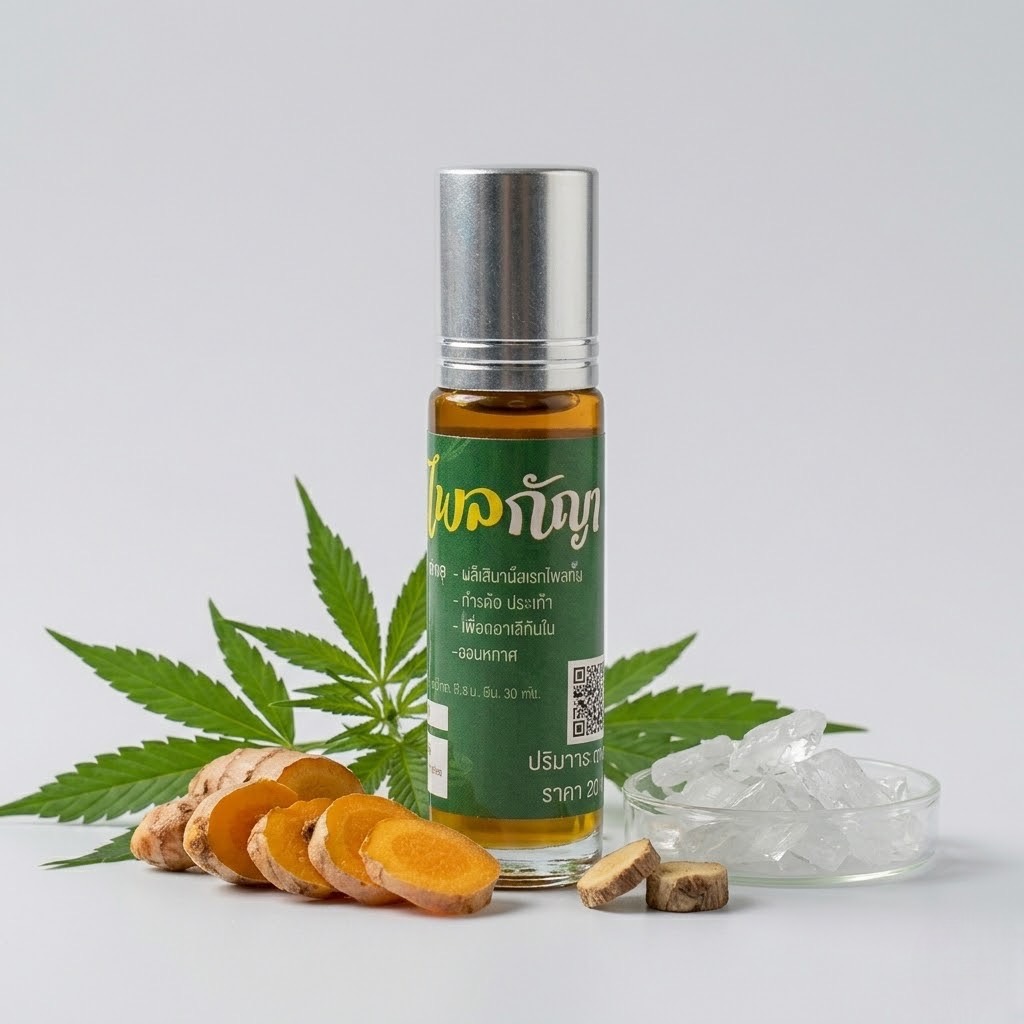 🌿 พิมเสนน้ำไพลกัญ (Herbal Liquid Balm – Plai & Cannabis)