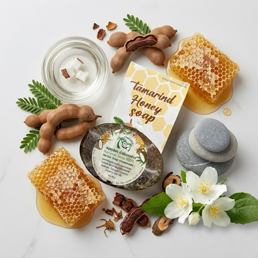 🌿 สบู่สมุนไพรน้ำมันมะพร้าวผสมน้ำผึ้ง (Coconut Oil & Honey Herbal Soap)