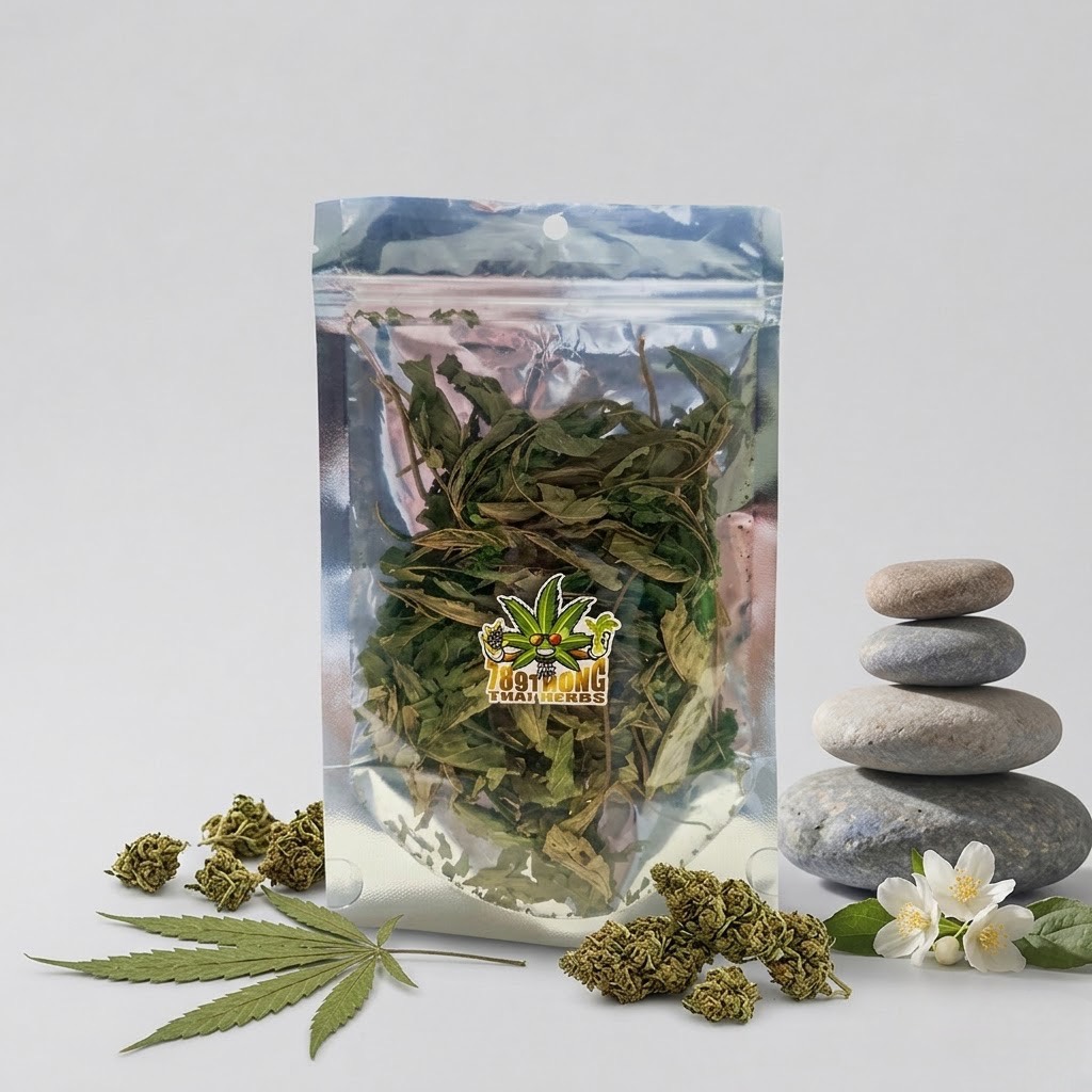 ใบกัญชาอบแห้งเป็นผลิตภัณฑ์จากวิสาหกิจชุมชน ที่ผ่านกระบวนการคัดเลือกและอบแห้งอย่างพิถีพิถัน เพื่อคงคุณภาพ กลิ่น และคุณค่าของสมุนไพร เหมาะสำหรับนำไปใช้ประกอบอาหารหรือเครื่องดื่มในชีวิตประจำวัน